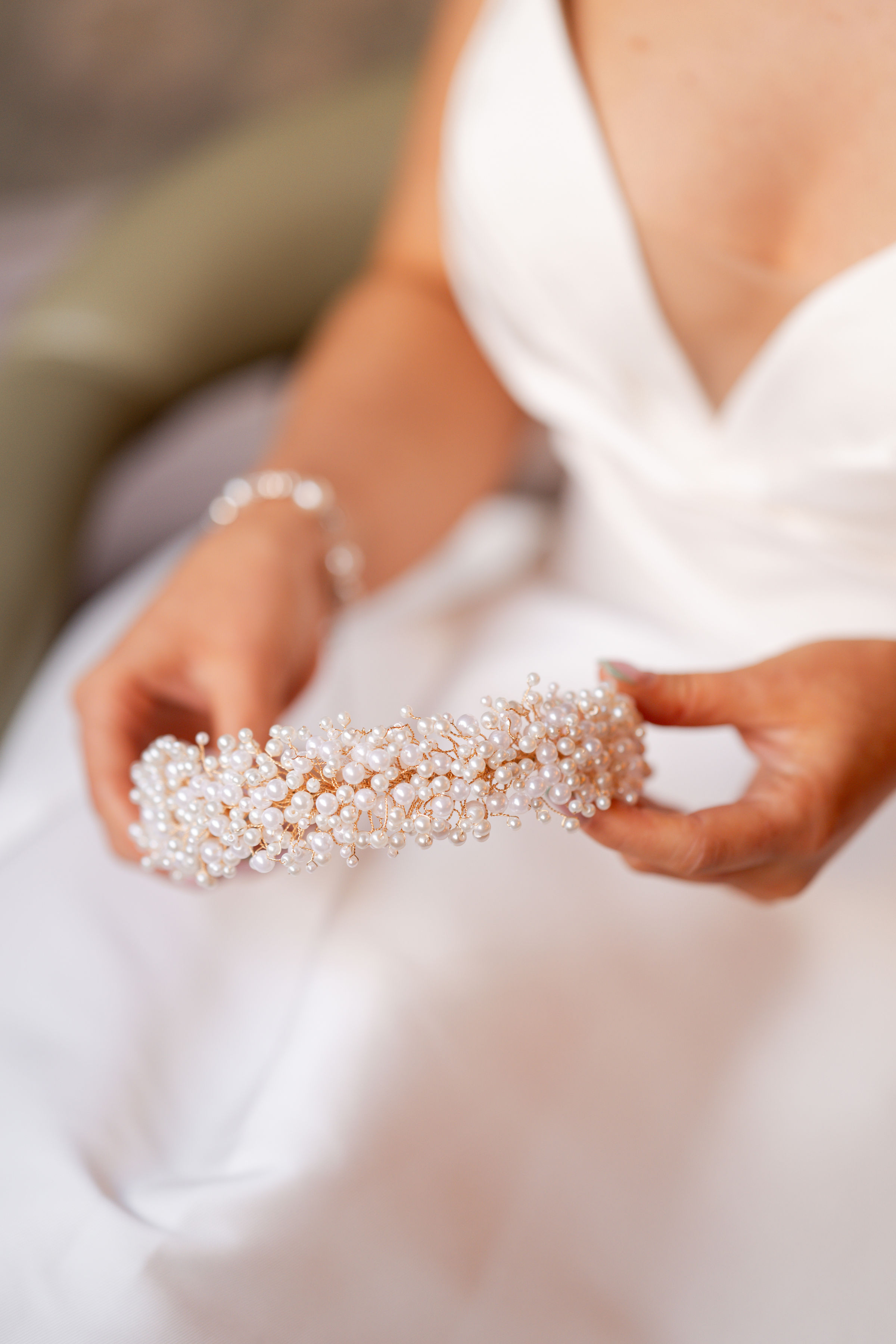 The goal is for every bride to feel beautiful, empowered and comfortable in their piece. We believe with these designs there is an option for every style of bride to make their own statement; from a classic bride who just wants a clip to replace her veil on the dancefloor to a show stopping piece that accentuates the perfect dress. Whatever your style we will strive to make the piece that will help top off your special day.